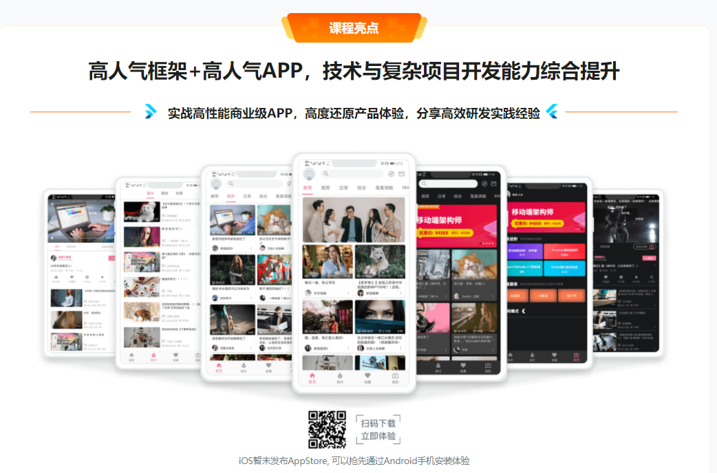 近年来各大公司对Flutter技能的要求越来越高,甚至设立了专门岗位,但掌握Flutter高阶技能的人才寥寥无几,市面上干货Flutter高阶课程少之又少,导致Flutter高阶人才缺口大。为此我们专门为大家设计了这门课程,助力你早日成为企业抢手的新一代工程师。