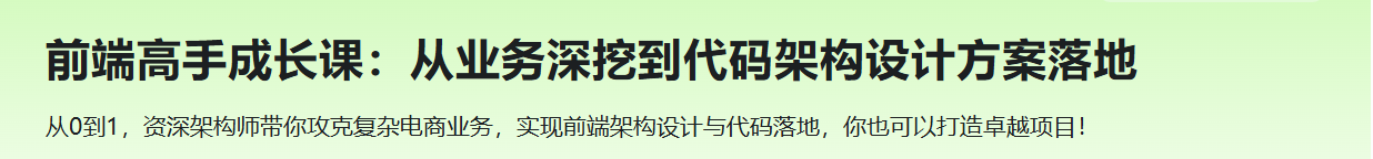 前端高手成长课-从业务深挖到代码架构设计方案落地,前端代码架构设计能力,是前端工程师职业发展的关键分水岭。 优秀的架构设计能力,能让你轻松应对复杂业务需求;反之,缺乏架构思维可能导致程序因小变更而崩溃。面对前端业务需求快速变化的挑战,如何有效破局? 这正是本课程的主旨。本课程以真实的前端电商业务场景为基础,从需求梳理到架构落地,通过核心模块的全流程开发实践、组件封装及代码架构设计,助你打造高可靠性和强可维护性的项目。 期待你加入这门课程,掌握架构师的思考方式,开启卓越的开发之路! 从此告别困局,实现职业进阶,创造更大价值!