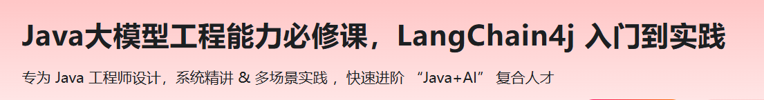 破解 Java 开发者转型 AI 困局!聚焦企业急缺的 LangChain4j+LLM 应用开发能力,通过从0到1构建智能失物招领应用,带你全流程打通从需求分析→架构设计→代码实现→迭代优化的企业级开发闭环;课程会深度解析LLM大模型应用开发核心技能,涵盖:ChatMemory 状态管理、动态提示词工程、Tool工具链集成及 AiService 服务化等核心组件,助力你轻松打通“Java 大模型应用开发最关键卡点”,倍增 AI 时代 Java 工程师全新竞争力。