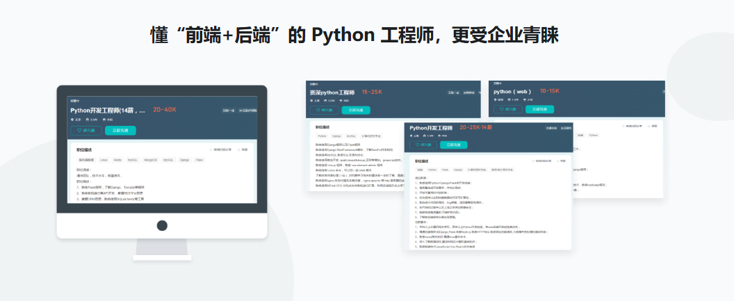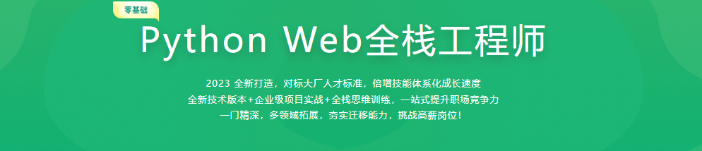 Python Web全栈工程师视频教程最新高清版。本课完全对标大厂人才标准,2023 全新打造,全面讲解Python Web全栈工程师体系化知识,全新技术版本+企业级项目实战+全栈思维训练,一站式提升职场竞争力一门精深,多领域拓展,夯实迁移能力,挑战高薪岗位!