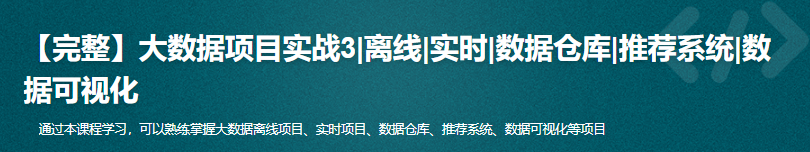 本课程包含Hadoop、Spark、Flink等主流实用大数据技术,涵盖离线计算、实时计算、数据仓库、推荐系统、数据可视化等主流大数据项目。