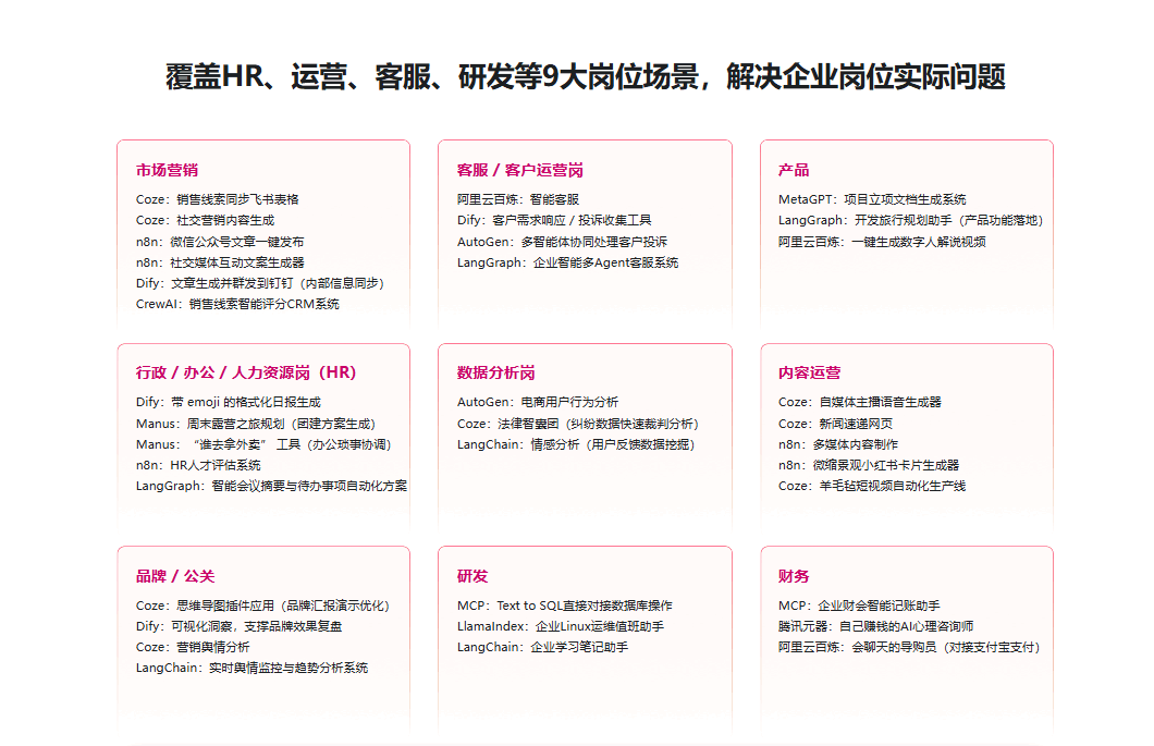 本课程系统覆盖AI Agent主流工具与框架,包含Manus、Dify、Coze、n8n、腾讯元器等低代码平台,以及LangChain、LangGraph、LlamaIndex、CrewAI、MetaGPT、AutoGen等开发框架。课程结合100+实操案例与4大综合实战项目,带你从简单到复杂,从入门到进阶,系统构建从单智能体到多智能体开发硬核实战技术与企业落地能力,助力你快速成为企业刚需的AI智能体实战人才。