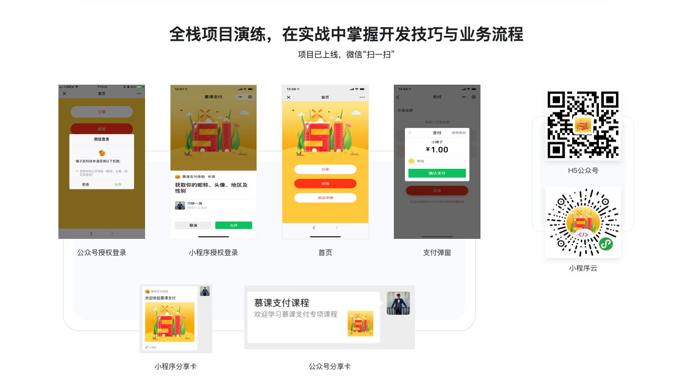•   本课程主要解决前端开发人员面对公众号开发以及小程序开发时,遇到的支付、授权、分享的技术和业务痛点,通过此课程能够更加针对性的掌握用户授权流程、分享流程以及支付所涉及到的前后端的各个环节的知识,一次学习终身受用,升职加薪的必备技能。