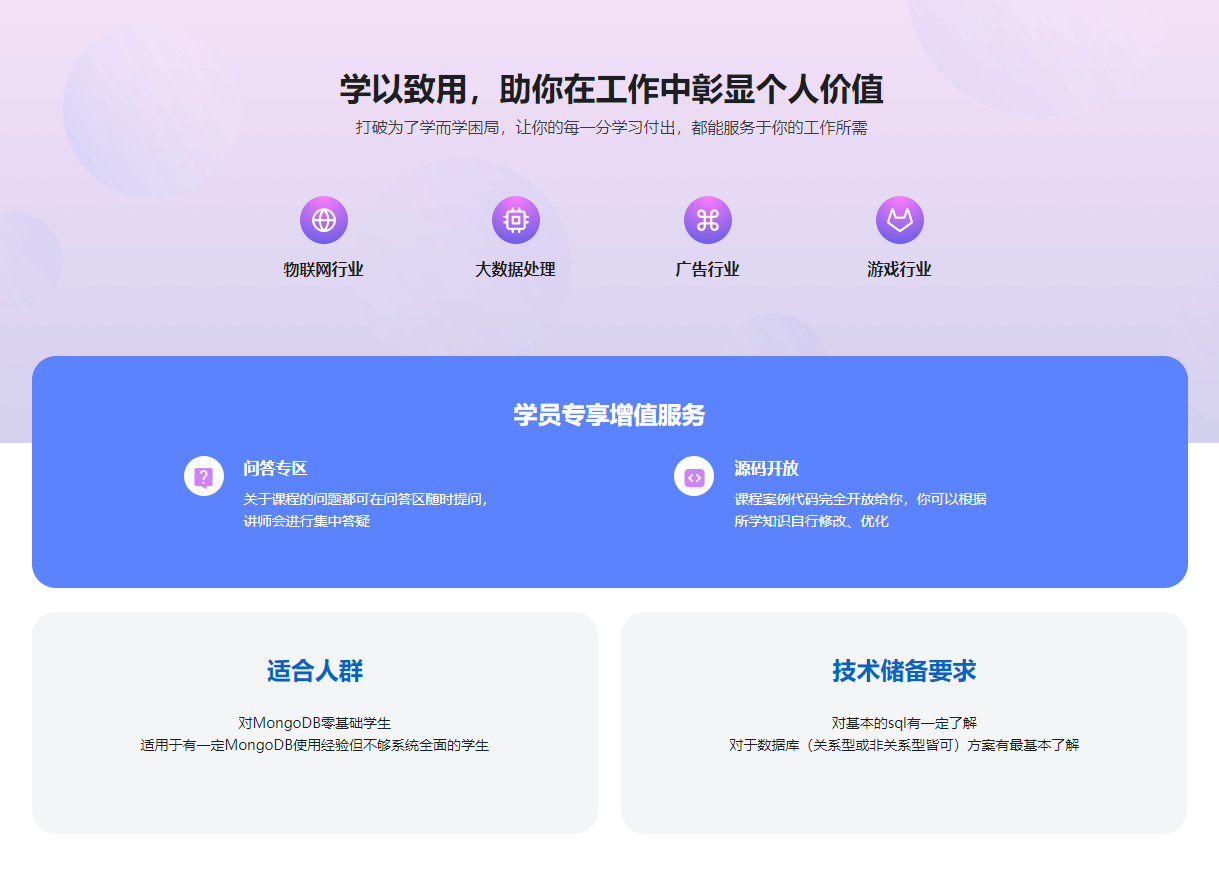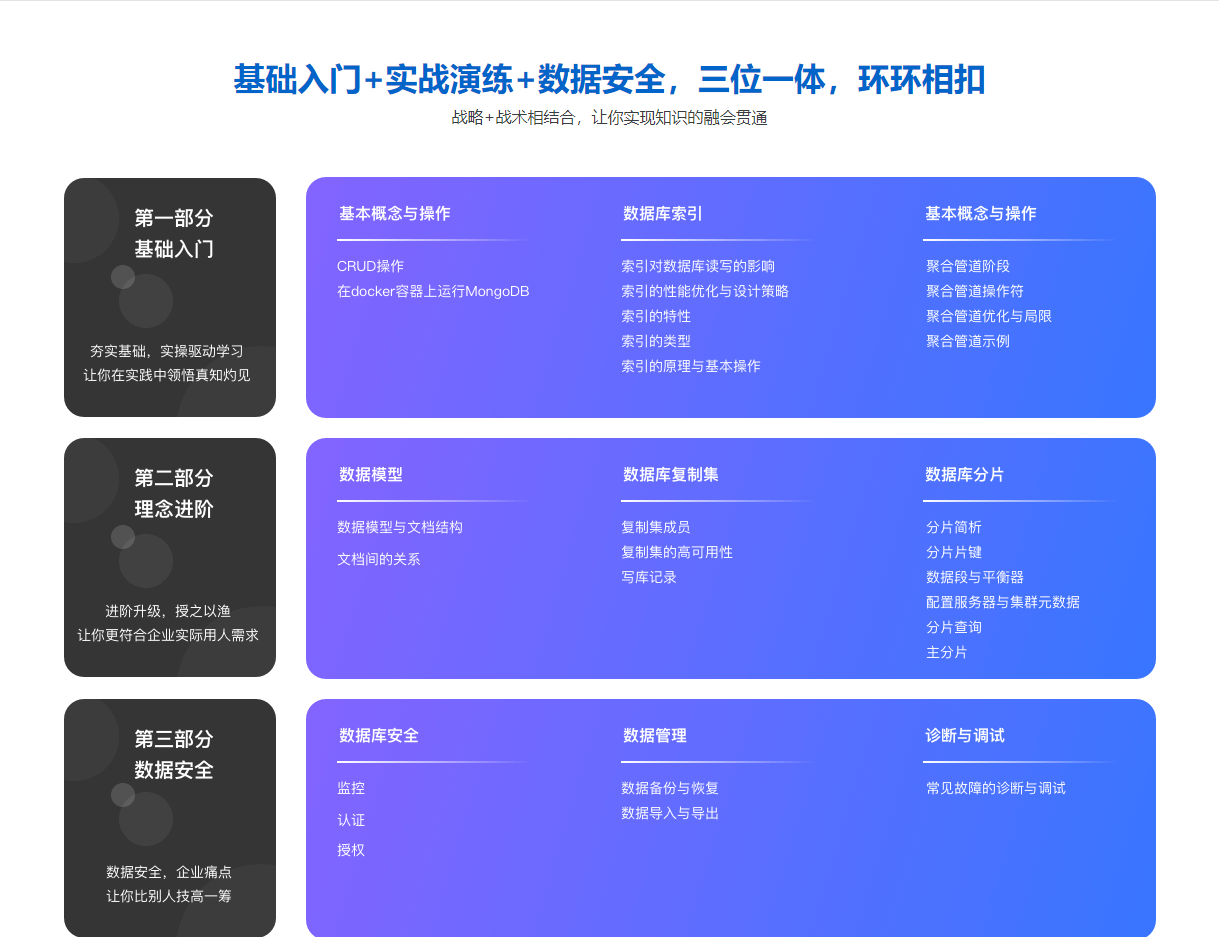 还在为不知如何快速高效地入门MongoDB数据库而纠结和烦恼吗?不要再浪费时间了,本节导学告诉你,玩转MongoDB实战课程为你设计的学习路线,如何带领你事半功倍地掌握深受业界欢迎的MongoDB数据库知识。
