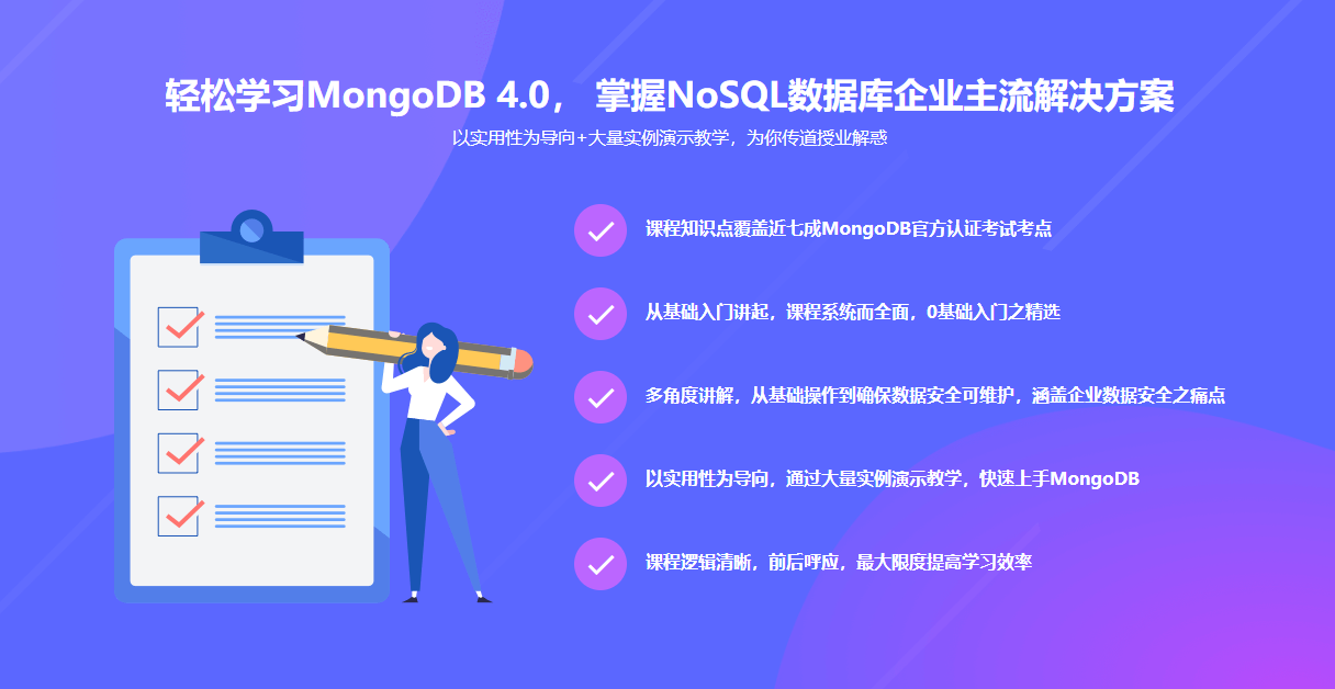 索引是性能的决定性因素,工作中,很多数据库故障问题都源于不恰当索引设计。面试中,索引常常被考察。本章节深入浅出地为同学们讲解索引的概念,配以大量的实际操作讲解MongoDB索引相关知识。助同学们合理使用索引,让你的数据库性能更优秀。…
